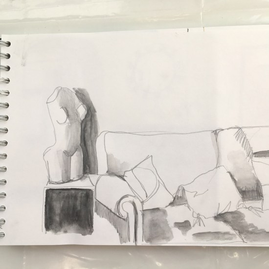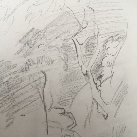 I hadn’t tried copying before the MA and during it, apart from our trip to the British Museum, I didn’t give any time to it. I grappled with the Turner sketches for three or four weeks at the British Museum and I could see how I needed that time to gain some sort of ‘muscle memory’ in my hands in order to understand (something about) what he was doing. I don’t think I’m about to go out sketching like Turner, or anyone else, but I have become more confident that I can use different drawing styles to achieve the images I have in mind.