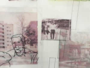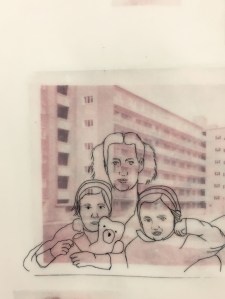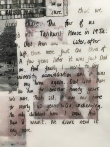 I was lucky enough to be shortlisted for the Derwent Art Prize 2018 and a piece I completed while at Wimbledon, Tanhurst House/Piazza Epiro, was on show in September in the Mall Galleries, London. I wasn’t sure about submitting a piece which now seems quite old (!) but in fact it had never been shown in public before, not even in one of the short-lived interim exhibitions we put on a few times during the MA course. It’s good to keep making new work, but equally it’s good to give work more than one outing. The piece is about the distance – in time, space, meaning, style … – between the block of flats which was our childhood home, in Lambeth, and the apartment my sister lived in when she worked in Rome in the late 1970s. I used a photograph of the two of us standing in front of her wardrobe, indulging in a favourite sisterly activity of checking out the clothes she had bought lately.