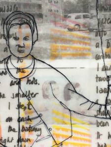 Most recently, HB Drawing had its first group show in the Kaleidoscope Gallery in Sevenoaks, Seven Artists in Sevenoaks. More new work, this time inspired by our visits to the British Museum Prints and Drawings Department every month. More new work! I’m trying out new layering techniques using acrylic medium between layers of photo-transfers and drawing. The resulting pieces have weight and dimension and the layers seem to float behind/in front of each other as you can see in the detail photos below. Images of the complete works are on the Portfolio page.