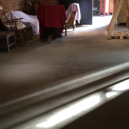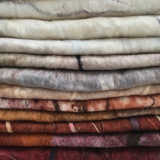 My plan was to make an unstructured piece and use the structure of the spaces in The Crypt themselves to create form. But it would need to be … quite large. Which means making a lot of prefelts, finding somewhere to lay them out and assemble the work (thank you Ruth!), and then working out how to wrangle the piece so I could actually work on it a bit at a time.