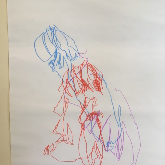 And we experimented with different drawing exercises: drawing each other’s faces, drawing with the breath, drawing each day at the same place, life drawing … studying Piero della Francesca’s Madonna del Parto in nearby Monterchi.