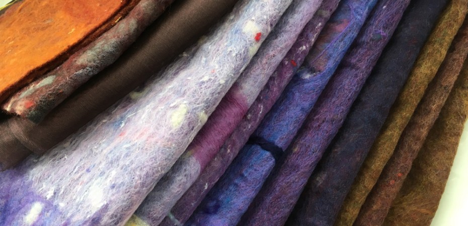 I had a look back through the notebook where I try to work out what’s important for me from what I’ve been reading and I came across a comparison Tim Ingold makes in his book The Life of Lines. He talks about the way a skyscraper is a construction dropped on top of a foundation, whereas a mountain is a fold in the ground: it is both a feature and part of the ground itself. I had noted that there was a parallel with memory being not the idea of an event dropped onto the blank page of your life, but rather an event that became part of the structure of your life. And now I think there is also a parallel with the making of felt compared with other textiles.