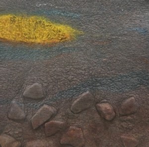 Ingold goes on to discuss his concept of ‘weather-world’ (which I’m not going into here) and that leads on to Deleuze and Guattari’s ‘smooth space’. If I’ve understood the basic idea, they posit a contrast between striated space which has a layout and smooth space which does not. Striated space is the territory of the sedentary where everything has a fixed place; and smooth space is the territory of nomads who create a meshwork of trails as they move through the world in a way that is not pre-determined. Ingold then says, in a sentence that leapt off the page at me, that Deleuze and Guattari ‘take the exemplary material of smooth space to be felt.’