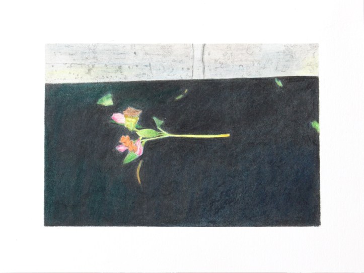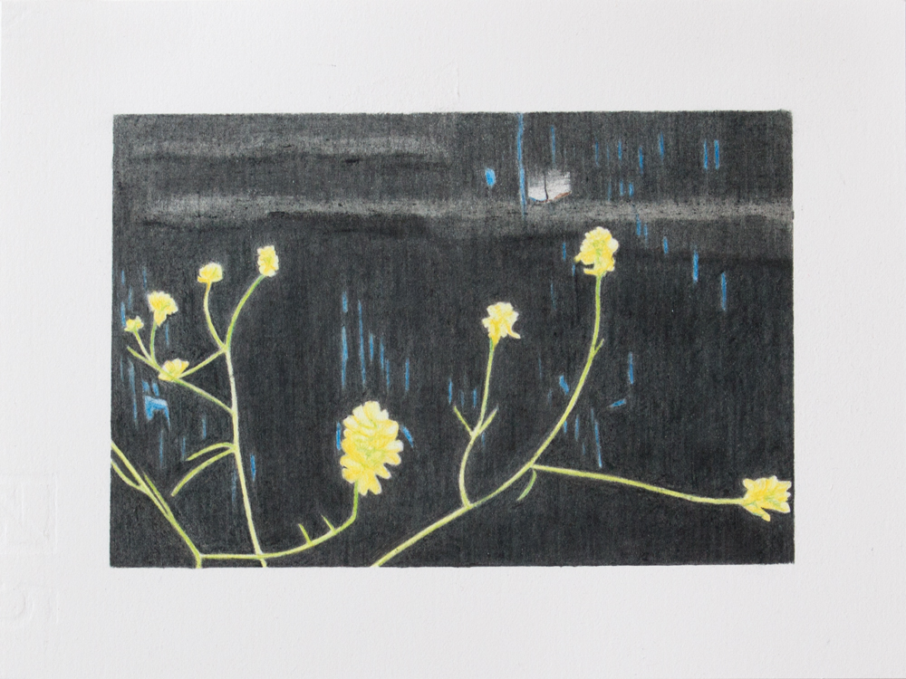 ‘yellow flowers, Woolwich’ 2020: coloured pencil; 20cm x 15cm