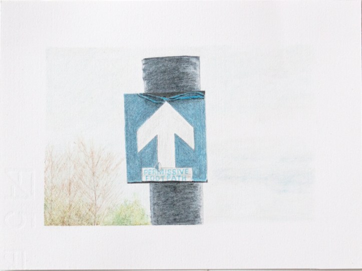 ‘footpath sign, Mucking Creek’ 2020: coloured pencil; 20cm x 15cm