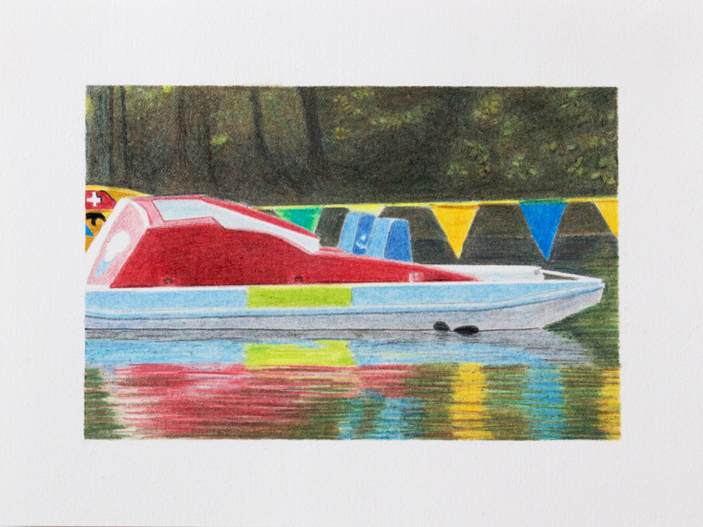 ‘red pedalo, High Wycombe’ 2020: coloured pencil; 20cm x 15cm