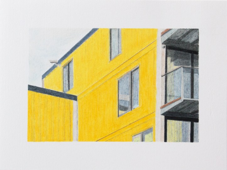 ‘yellow flats, Trinity Buoy Wharf’ 2020: coloured pencil; 20cm x 15cm