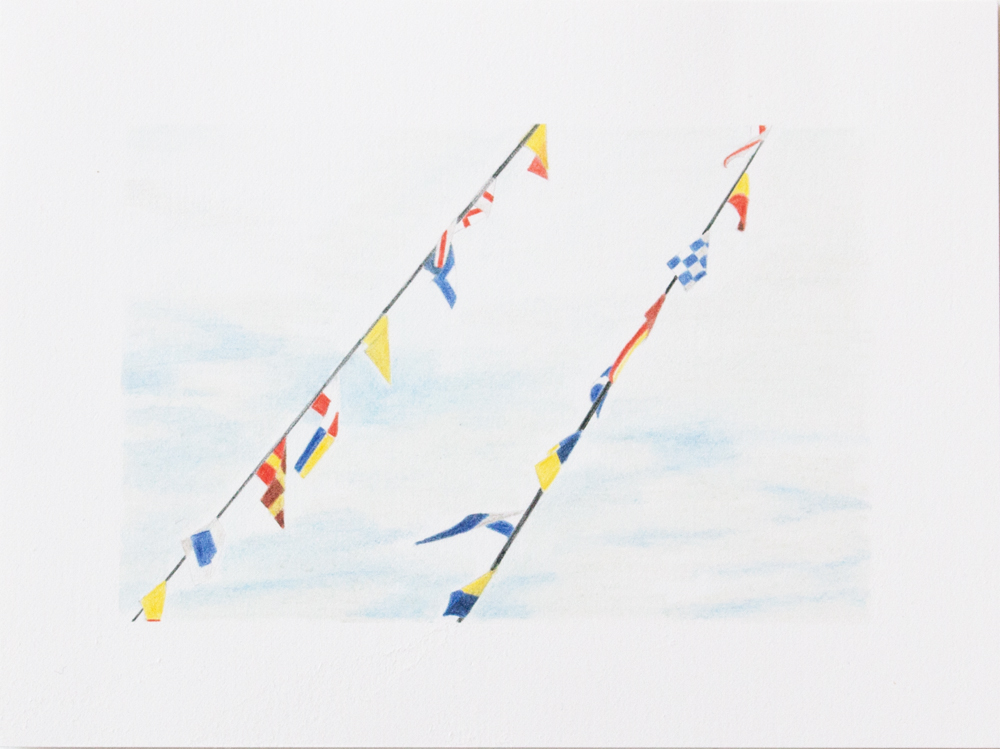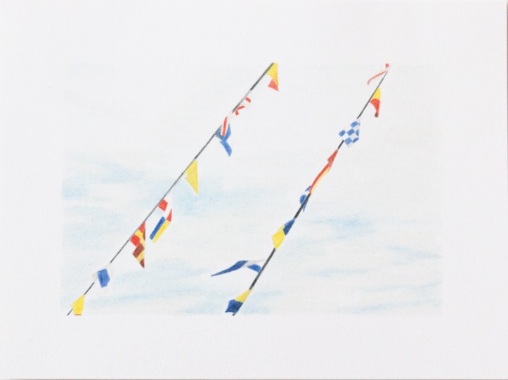 ‘flags, Trinity Buoy Wharf’ 2020: coloured pencil; 20cm x 15cm