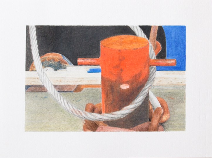 ‘orange capstan, Trinity Buoy Wharf’ 2020′: coloured pencil; 20cm x 15cm