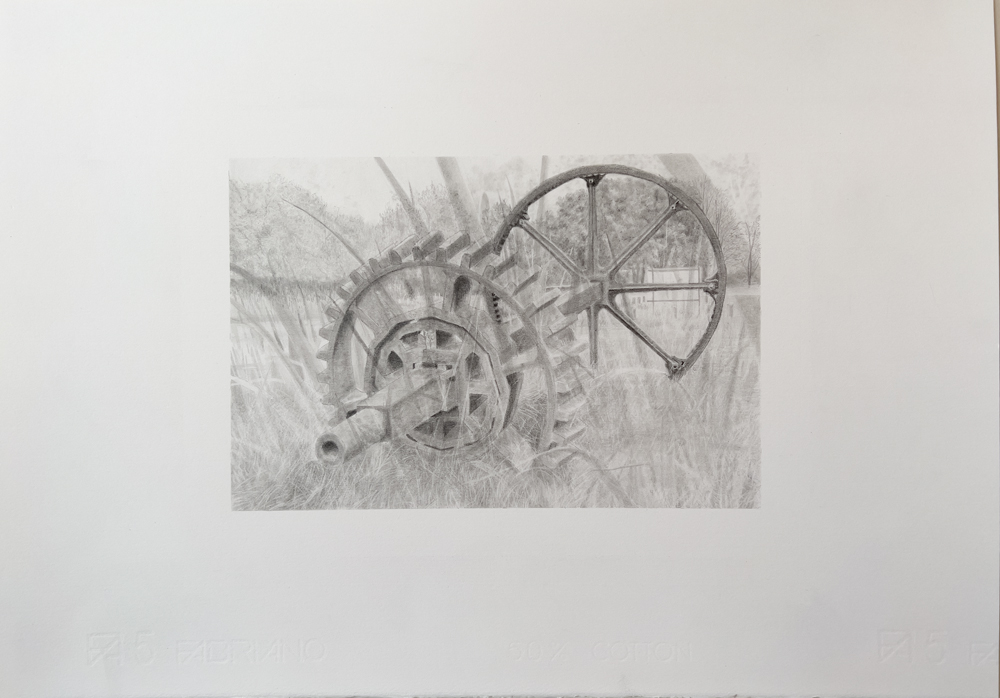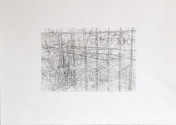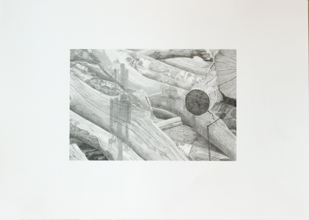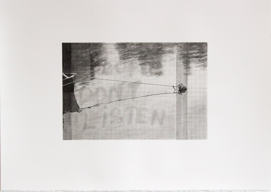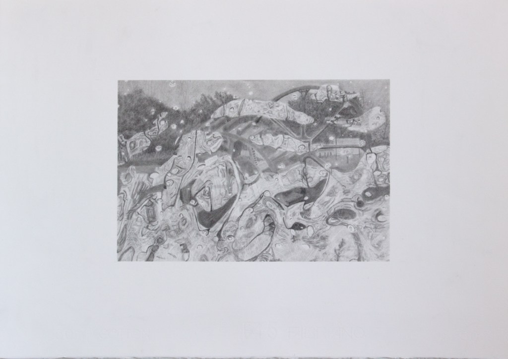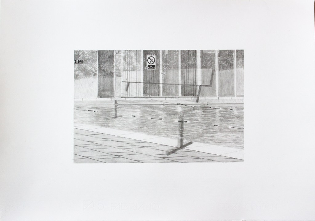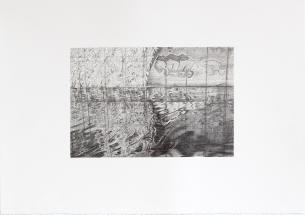 These drawings explore the unspectacular places, objects and views that you can find almost anywhere and that link one place to another. Each drawing merges two images. The foreground in one image floats to the background in the next image. The titles come from the What Three Words app, which allows every 3 metre square of the earth’s surface to be identified by a unique triplet of words.