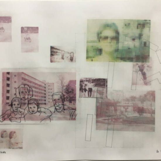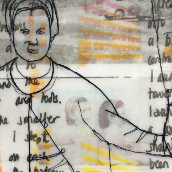 Perdita, 2018: acrylic phototransfer, graphite, pen on paper; 70cm x 50cm