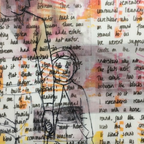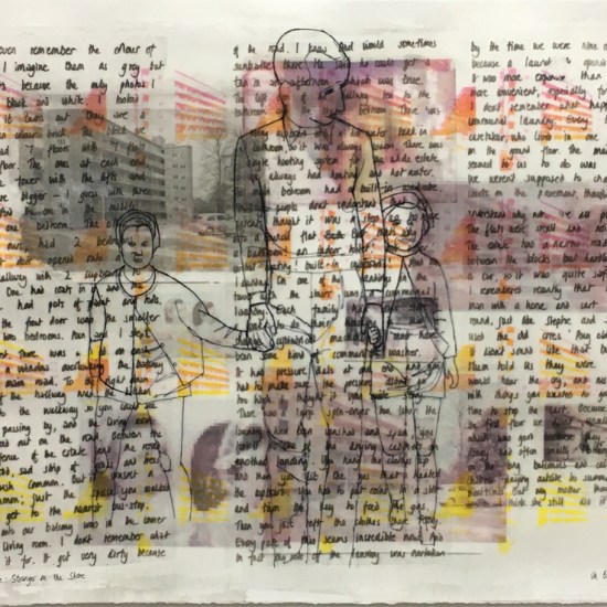 Stranger on the Shore, 2018: acrylic phototransfer, pen on paper; 80cm x 60cm