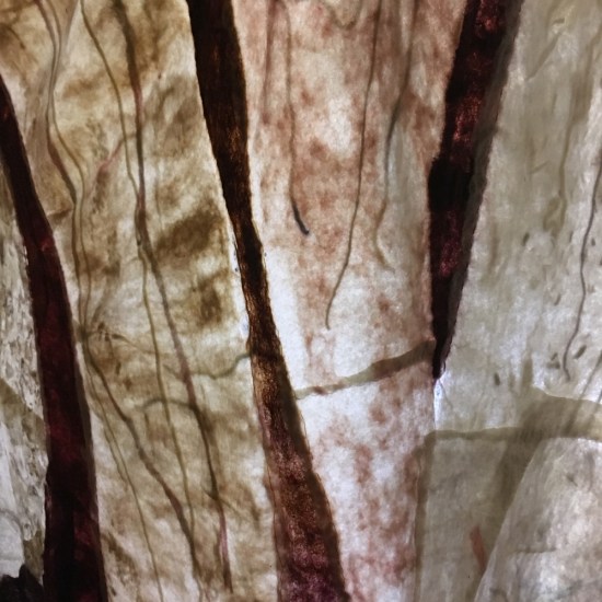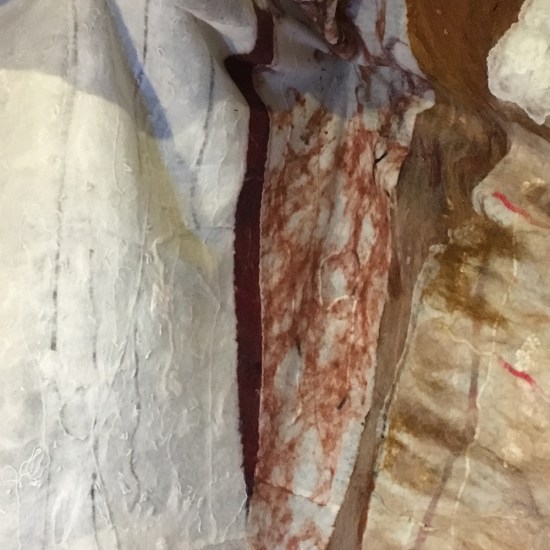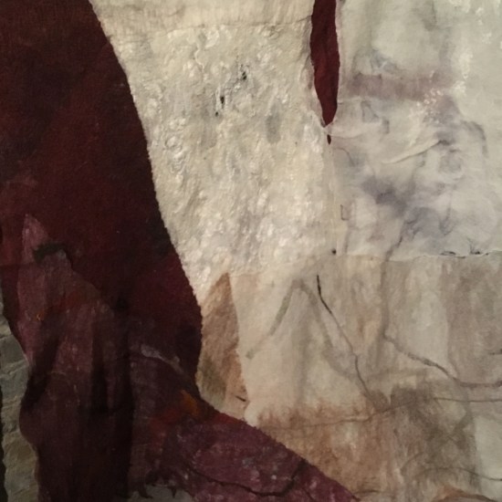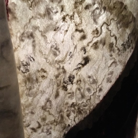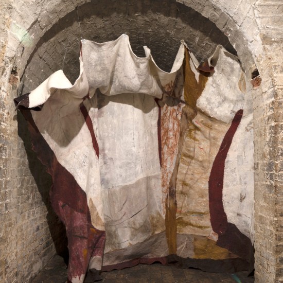 Caveskin, 2019: wool fibre, thread, fabric; c 3m x3m; installed at The Crypt Gallery, London NW1. Photograph © andrewyoungson.com