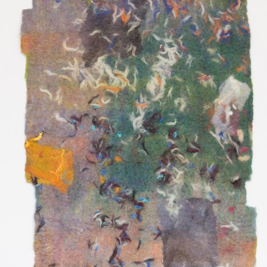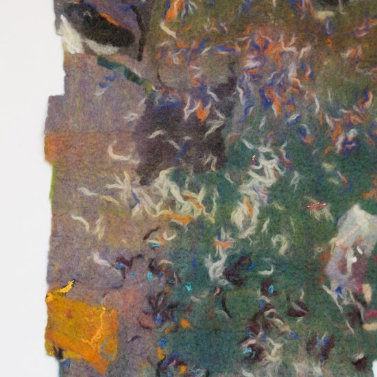 Twenty-five years ago this was all rice paddy, Shanghai, 2019: wool fibre, thread, fabric; 37cm x 79cm