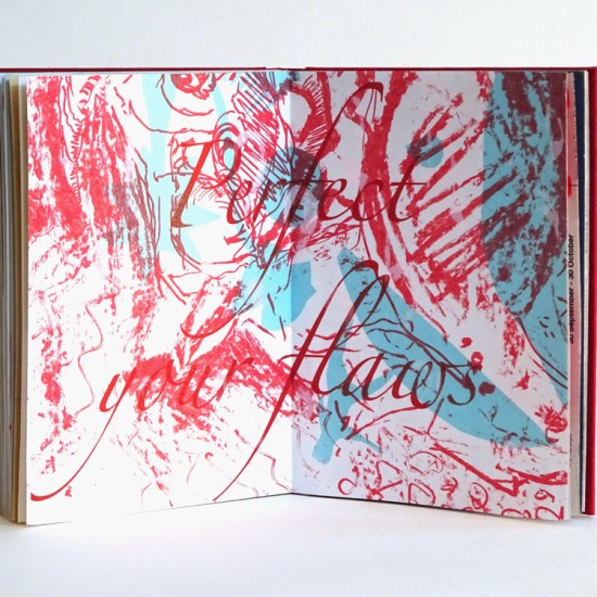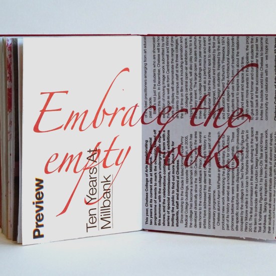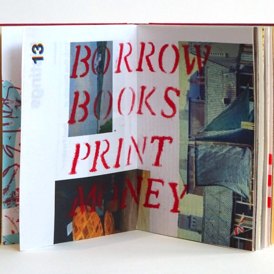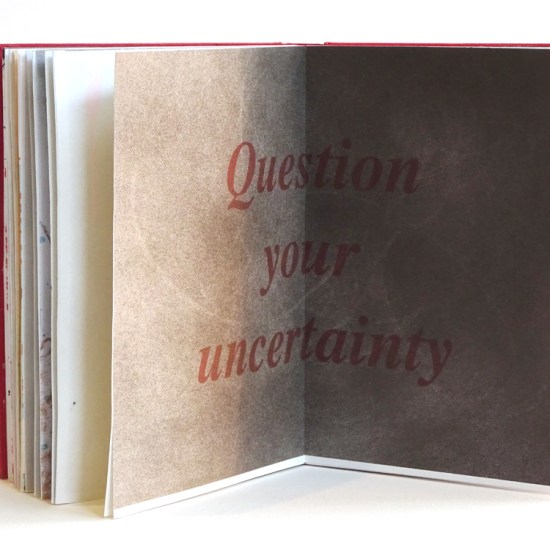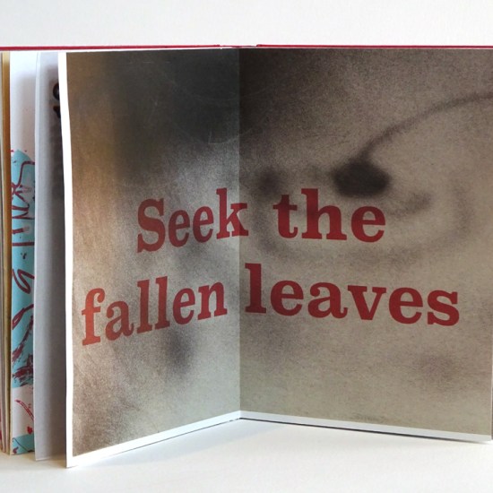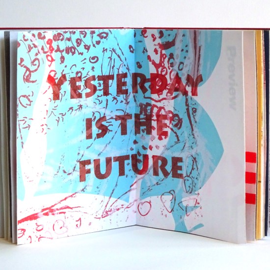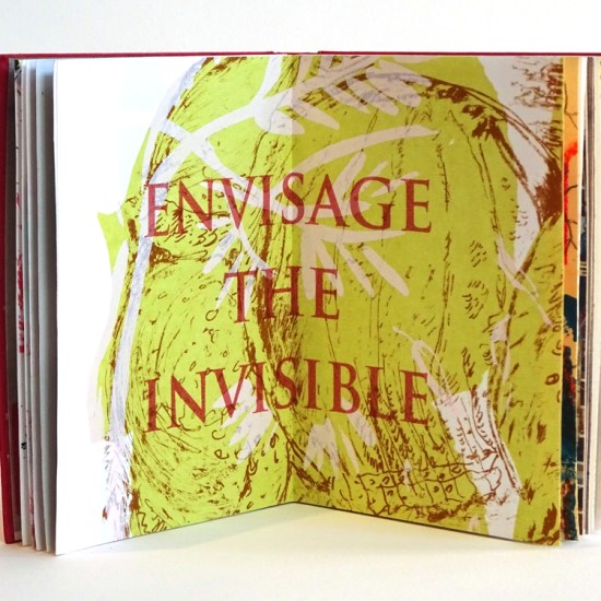 To the Sunlit Uplands, 2016: hand-bound book, stencilled and digitally-printed pages, bookcloth cover, drumleaf binding; 10.5cm x 15cm closed