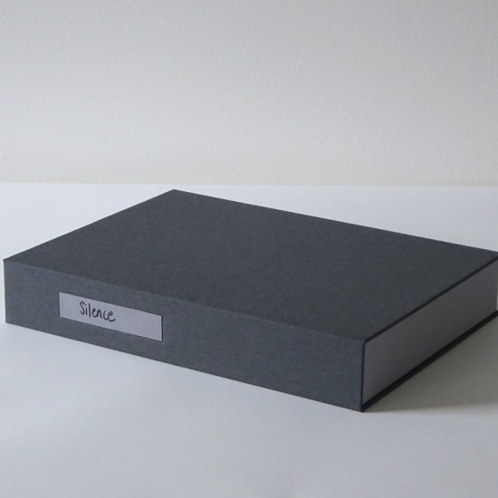 Silence, 2016: solander book containing hand-bound book; board, glue, bookcloth; 23cm x 31.5cm x 5cm