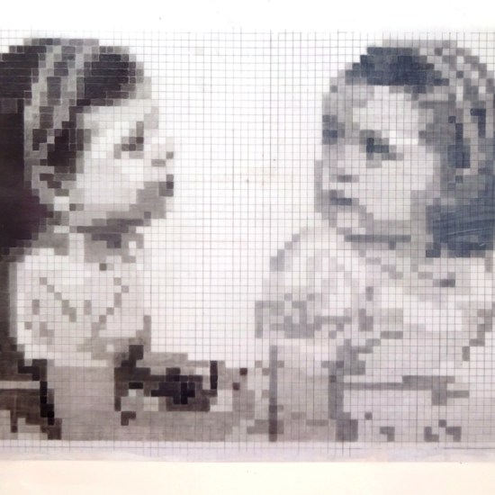 Piecework, 2017: detail of centre section; graphite, acrylic photo transfer; 70cm x 50cm